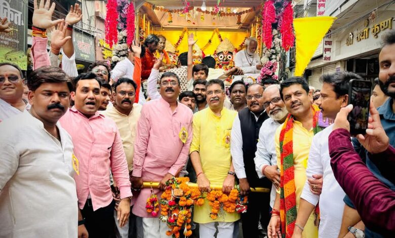 जबलपुर। जगत के नाथ भगवान जगन्नाथ स्वामी अपने बड़े भाई बलभद्र, बहिन देवी सुभद्रा के साथ भक्तो को दर्शन देने रथ पर सवार होकर निकले और अपनी मौसी के घर पहुंचे साहू समाज जबलपुर के तत्वाधान में 136 वें वर्ष रथयात्रा निकाली गई।