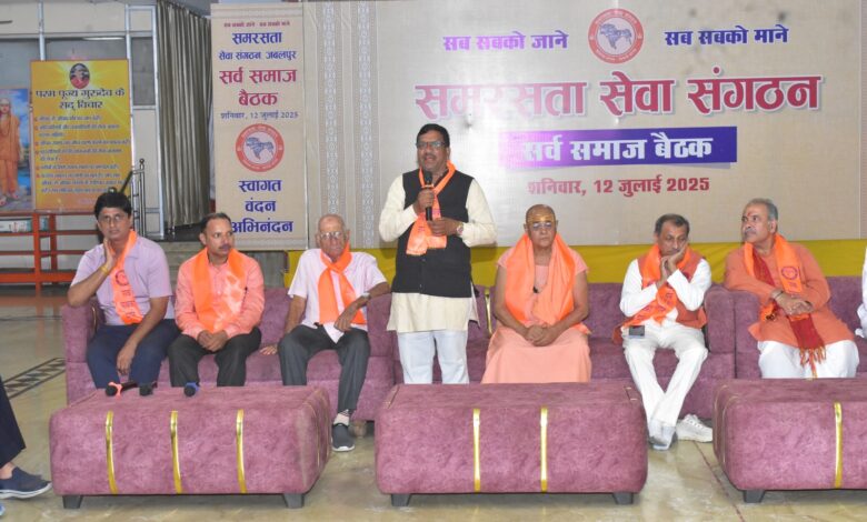 जबलपुर। भारतीय संस्कृति का मूल स्वर सामाजिक समरसता है और इसी समरसता के भाव को जागृत करने हमे पारंपरिक पर्वो को मिलकर मानना होगा, इसके लिए समरसता सेवा संगठन के द्वारा जिस तरह सभी समाजों को एक करके कार्यक्रम किए जा रहे है यह अनुकरणीय भी है और अभिनंदनीय भी है, उक्ताशय के उद्गार महामंडलेश्वर स्वामी अखिलेश्वरानंद महाराज ने समरसता सेवा संगठन द्वारा आयोजित सर्व समाज की बैठक के अवसर पर समन्वय सेवा केंद्र छोटी लाइन फाटक में दिए।
